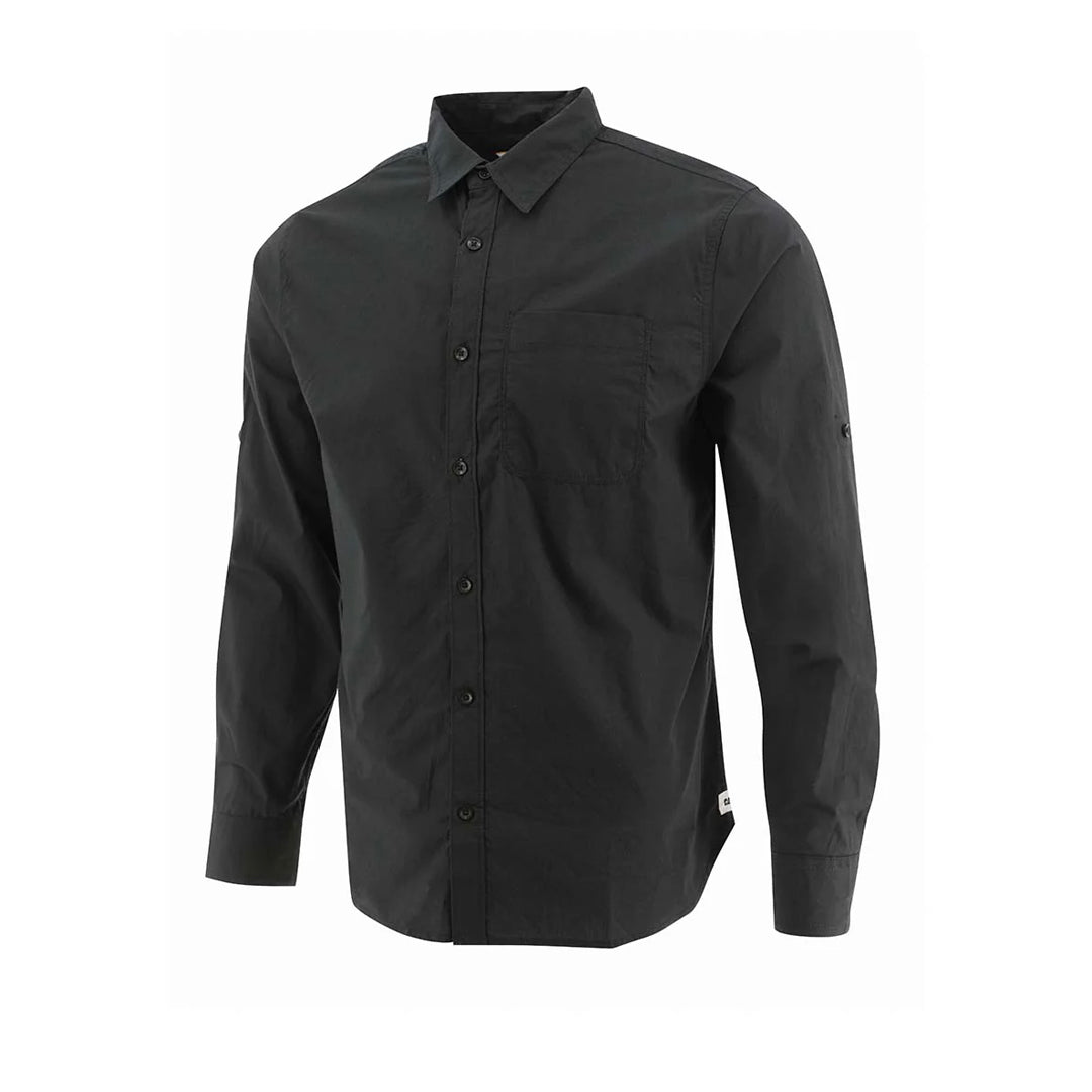 Material Poplin algodón 100%, bolsillo en el pecho izquierdo, mangas enrollables con logo de triángulo, puño con botón ajustable, etiqueta con logo en la costura lateral.