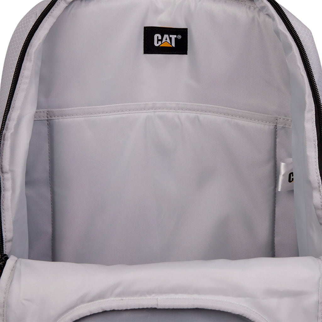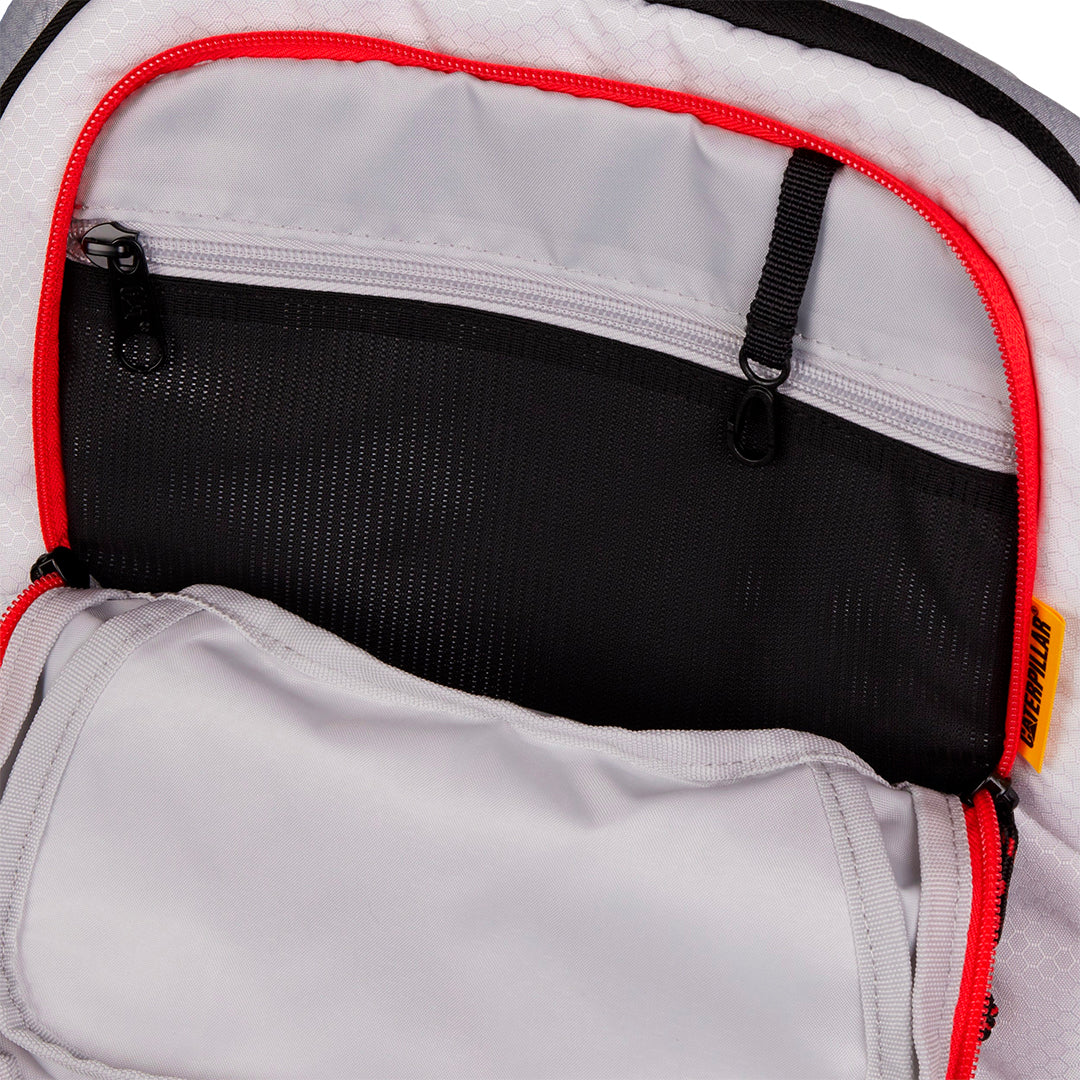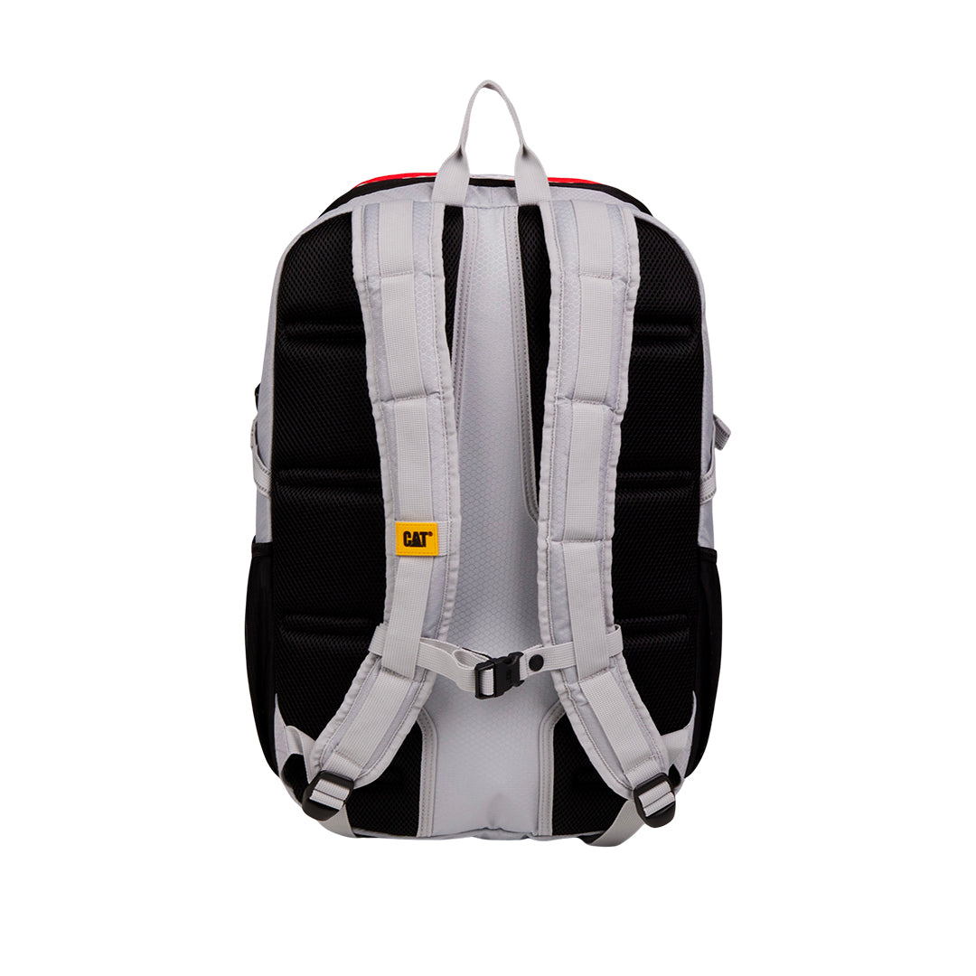 Mochila de 40 L fabricada en poliéster 300D hexagonal ripstop, con medidas de 23 x 53 x 34 cm y peso de 0.76 kg. Cuenta con compartimento principal de fácil acceso en forma de U con bolsillos para documentos y accesorios, bolsillo frontal con llavero, bolsillos laterales de tela para botellas, correas acolchadas y ajustables en airmesh con correa de pecho, cordón frontal elástico y logo reflectante para mayor seguridad.