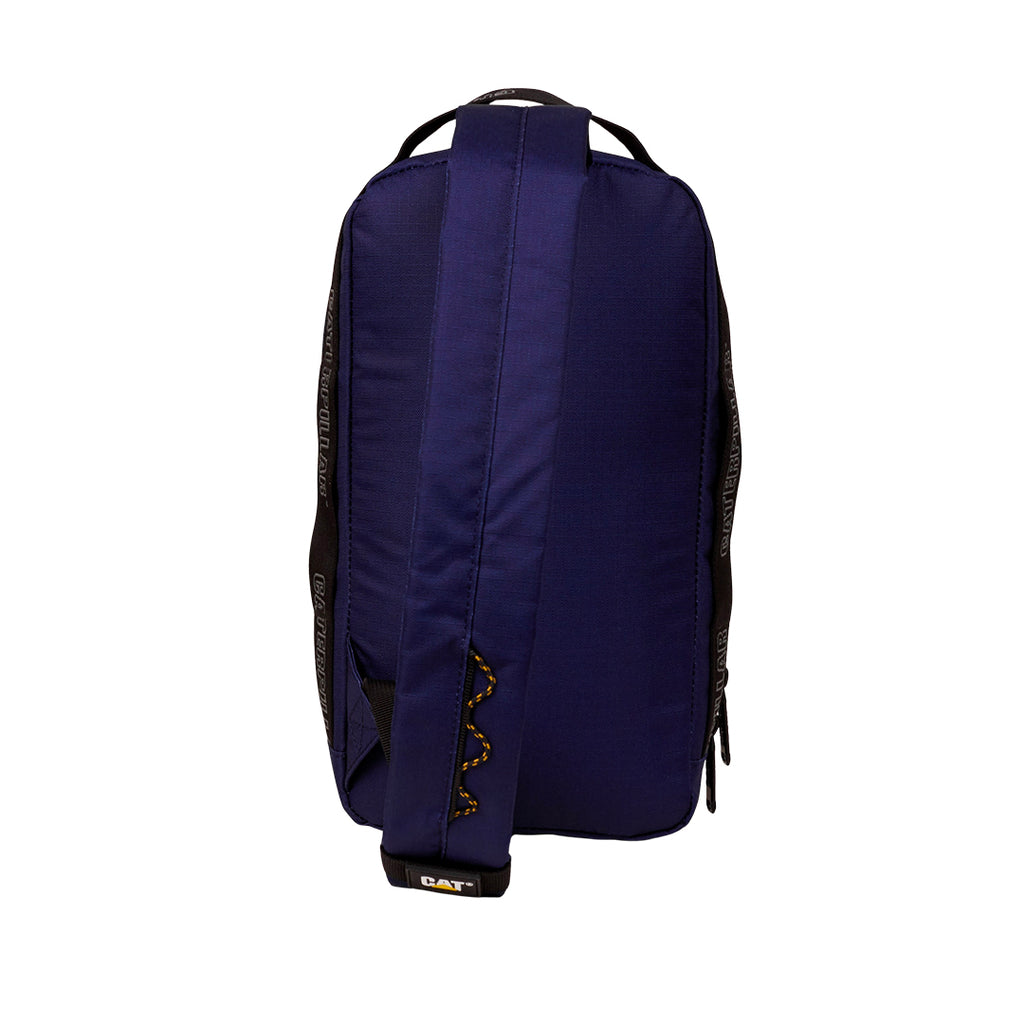 Mochila de 6 L fabricada en poliéster reciclado 450D Ripstop, con medidas de 18 x 32 x 9 cm y peso de 0.205 kg. Cuenta con compartimento principal con bolsillo interior, panel trasero y tirantes acolchados en airmesh, bolsillo frontal vertical con llavero, asa superior y lateral, detalles de cordones y logo reflectante.