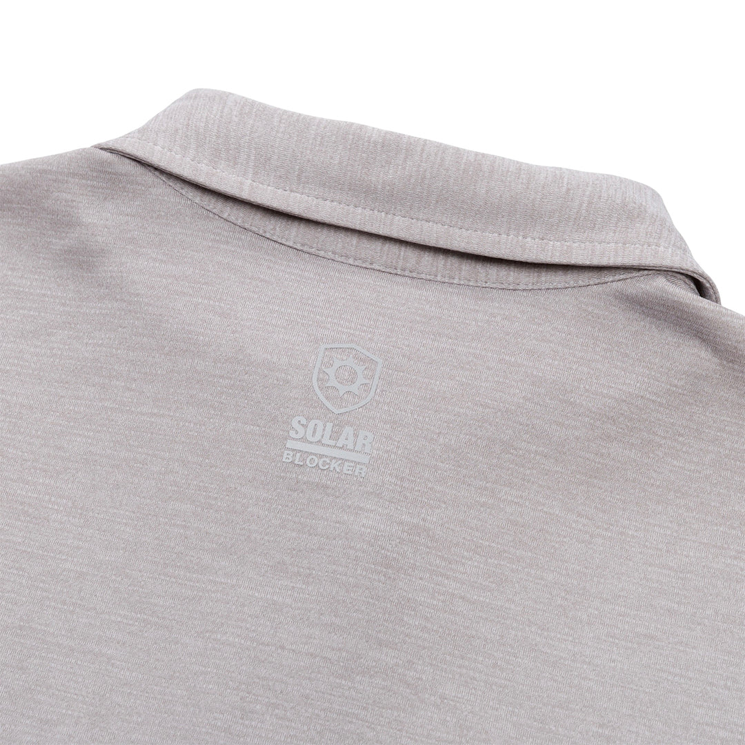 Camisa polo confeccionada con fibras Coolmax® que brindan termorregulación y protección solar UPF 50+. Diseñado con cuello del mismo tejido, tapeta frontal de tres botones y aberturas laterales para mayor frescura. Detalles distintivos: logo impreso en la manga izquierda, triángulo reflectivo, etiqueta Coolmax®, ícono Solar Blocker+ y diseño sin etiqueta en el cuello para más comodidad.