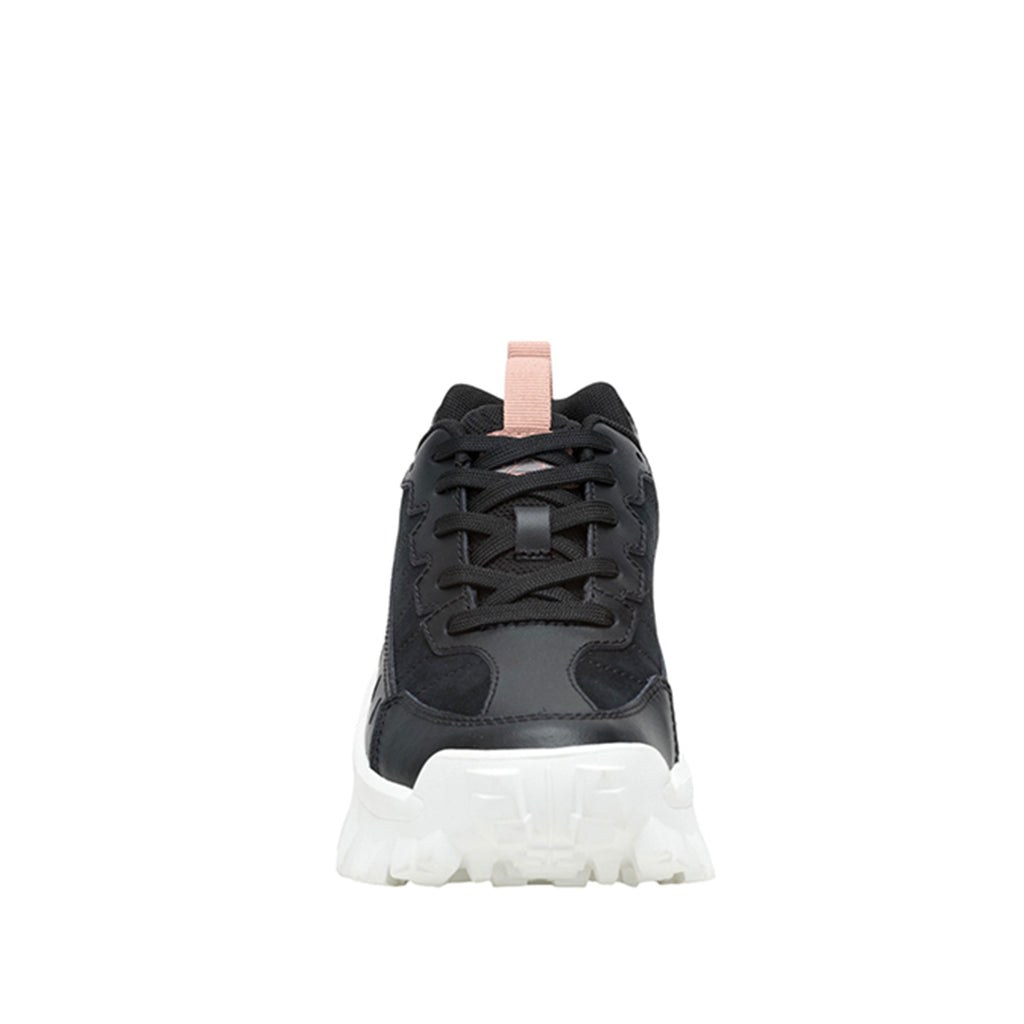 Estos sneakers cuentan con una capellada de gamuza recubierta de PU, un forro de malla interior fabricado con residuos industriales 100% reciclados, y una plantilla de espuma EVA suave que proporciona comodidad duradera. El forro del calcetín es 100% reciclado de la industria posindustrial y la suela es de EVA ligera. La construcción es tipo Strobel y la altura del taco es de 6 cm.