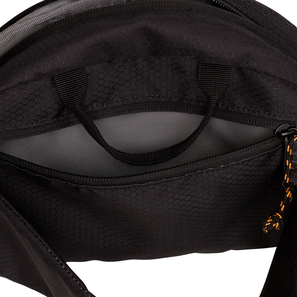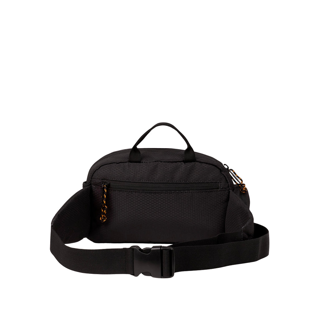 Cangurera de 3 L fabricada en poliéster 300D hexagonal ripstop, con medidas de 24 x 15 x 10 cm y peso de 0.22 kg. Cuenta con cinturón ajustable con hebilla de liberación rápida, bolsillo frontal con flap y parche Hypalon para luz de bicicleta, bolsillo lateral con cremallera, bolsillo lateral de malla elástica, detalles reflectantes y logo reflectante para mayor seguridad.