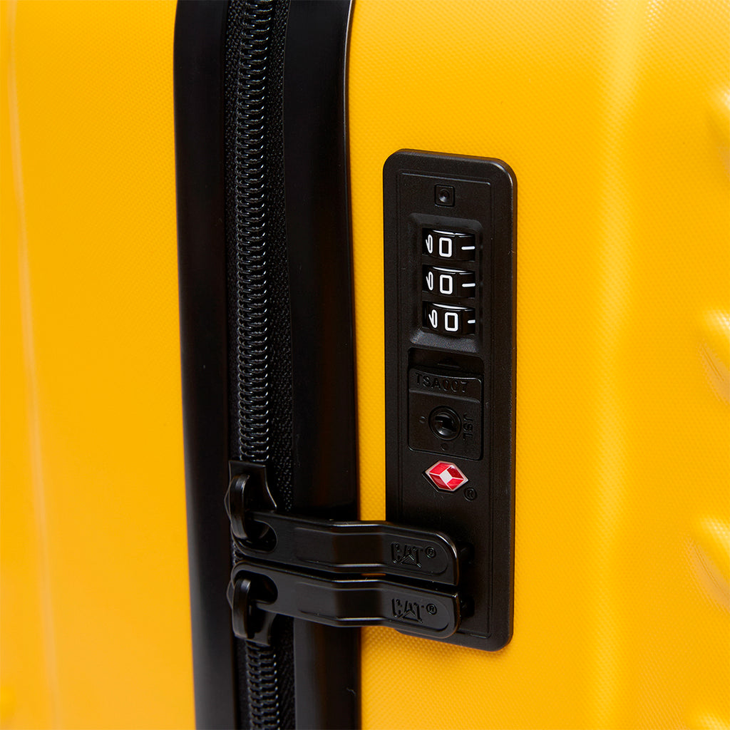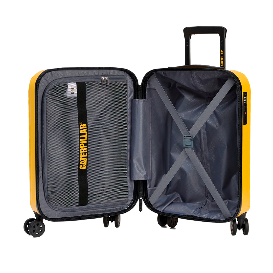 Maleta marca Caterpillar con dimensiones de 37.5 x 54 x 23.5 cm y capacidad de 35 L. Pesa solo 2.7 kg gracias a su material de alta resistencia 100% ABS. Perfecta para viajes y aventuras, manteniendo tus pertenencias seguras y organizadas.