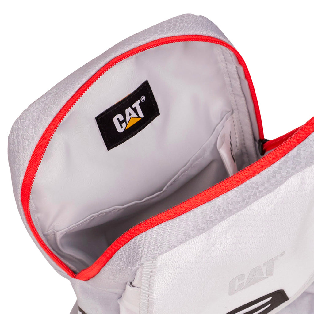 Bolso de 4 L fabricada en poliéster 300D hexagonal ripstop, con medidas de 18 x 29 x 6 cm y peso de 0.185 kg. Incluye compartimento principal con bolsillo interior, flap frontal, elementos reflectantes en logo y webbing, parche Hypalon y etiqueta tejida Caterpillar para mayor estilo y visibilidad.