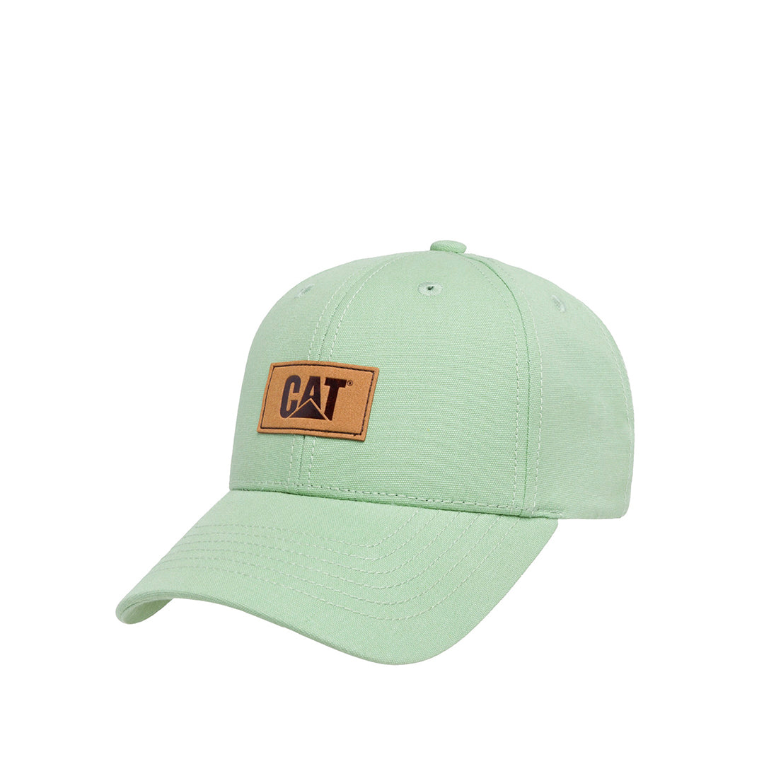 Gorra con visera curva que incorpora parche frontal en faux suede, ajuste trasero regulable con broche Caterpillar® y diseño cómodo y funcional ideal para uso diario.