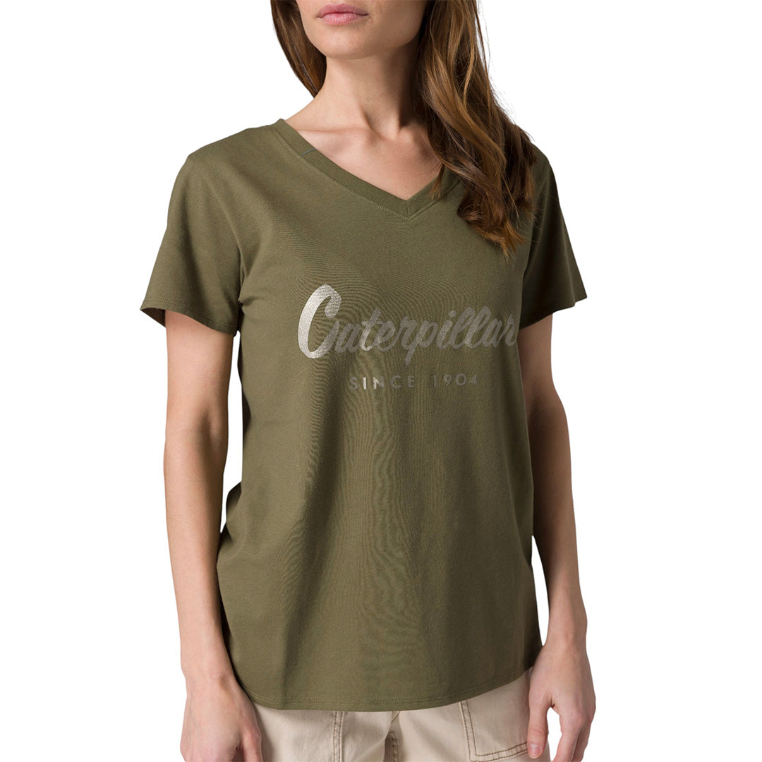 Camiseta Metallic V-Neck para mujer color olivo
