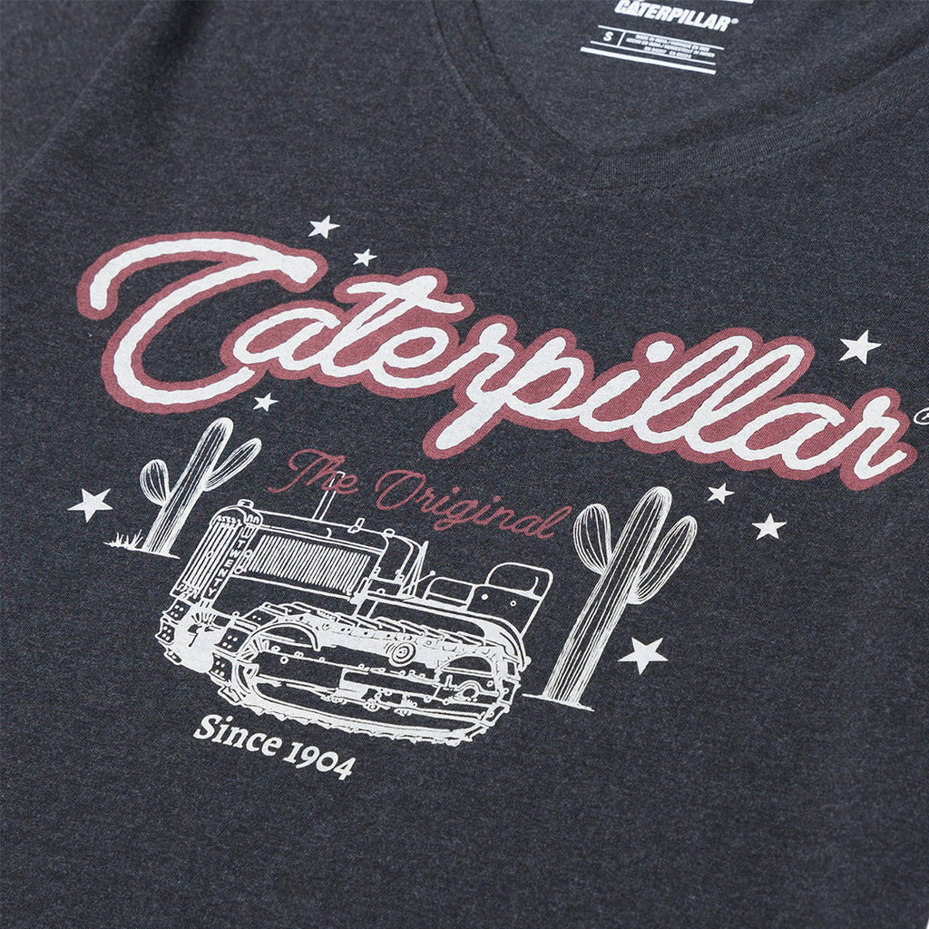 La camiseta V-Neck Graphic combina comodidad diaria con un gráfico de inspiración utilitaria y un escote en V que aporta un toque moderno, rematada con la etiqueta Caterpillar® en el dobladillo.